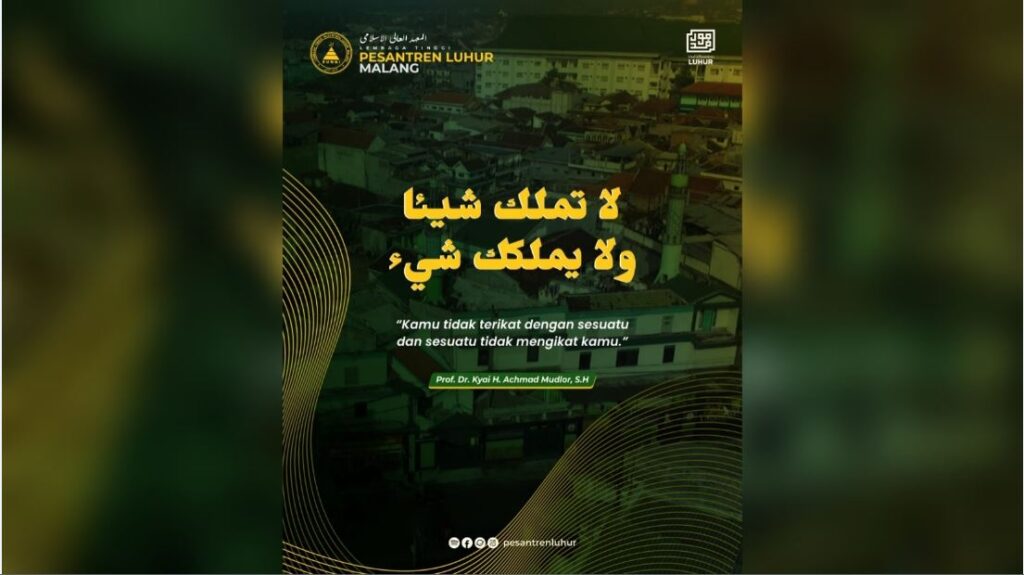 Dawuh beliau guru kami Almaghfurlahu Kyai Haji Prof. Dr. Achmad Mudlor S.H. Dawuh ini selalu kami dengar di pesantren, tatkala beliau dengan njlimet menerang bait-bait kitab hikam karya Ibnu Athaillah Assakandari, kitab yang selalu beliau baca mulai awal berdirinya kembali Pesantren Luhur angkatan ke 3, sampai beliau intiqol ila rahmatillah,Dawuh yang singkat tapi memiliki makna yang sangat mendalam sekali ketika hal tersebut direnungi dengan benar